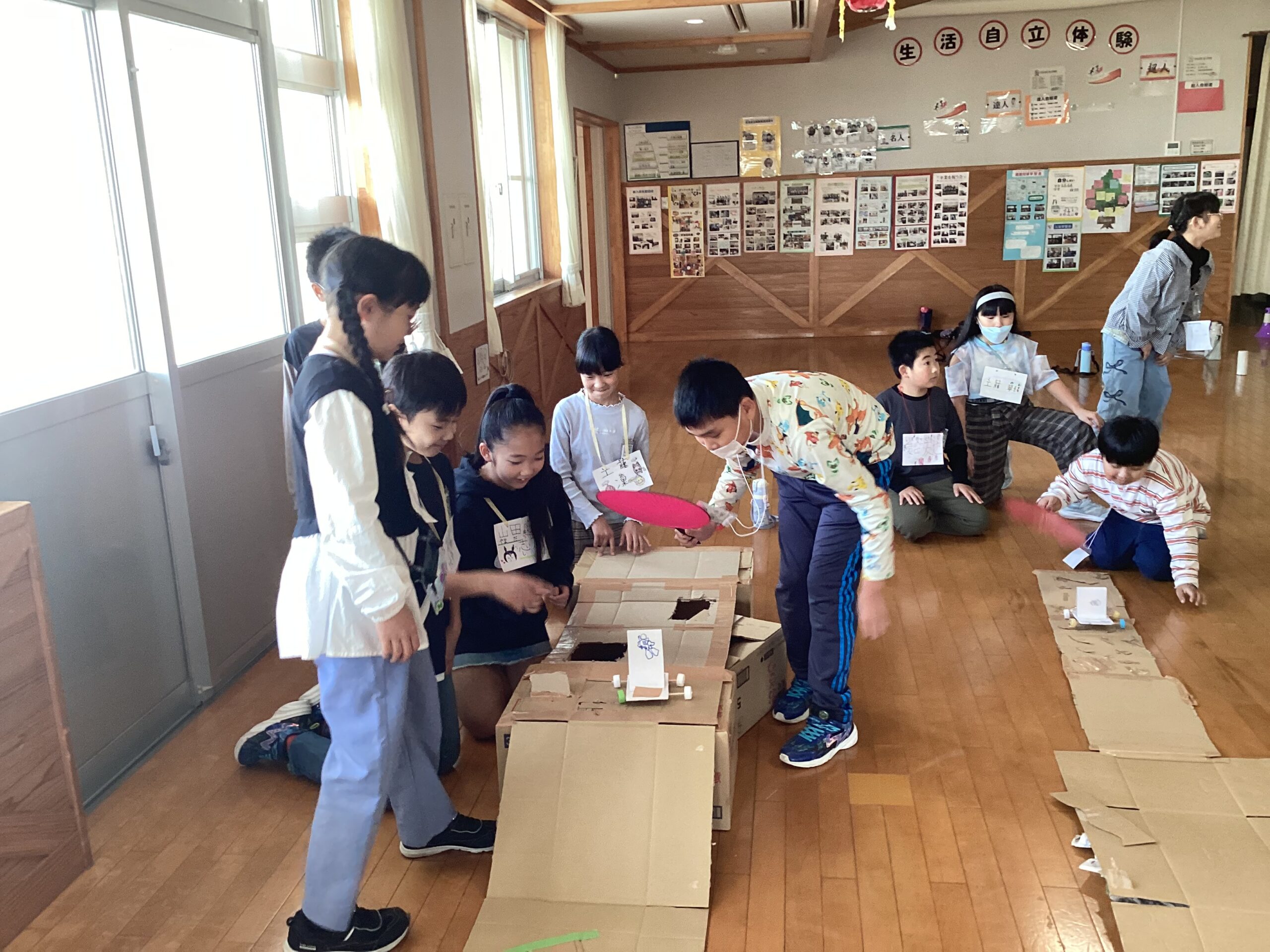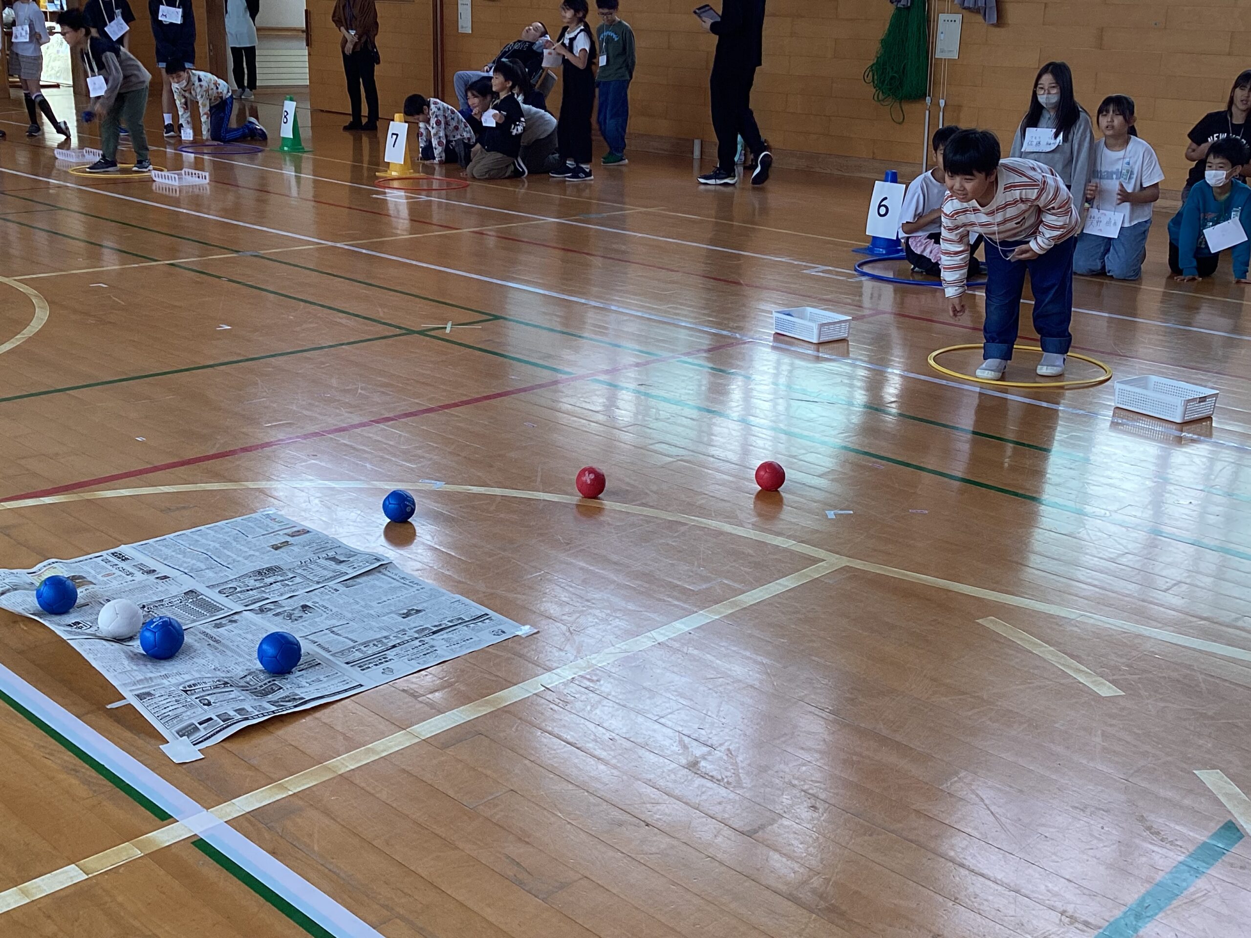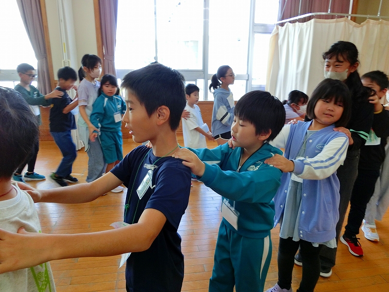 10月14日(火)、向能代小学校4年を迎えて小学部児童との交流を行いました。当日は12グループに分かれ、ボッチャや風で動く車のゲーム、じゃんけん列車などの交流を楽しみました。始めは緊張気味だった児童も、ゲームを一緒に楽しむうちに互いを応援し、自然に言葉を掛け合いながら交流を深めました。終わりの会では、「一緒にゲームをやって楽しかった」「始めはうまく交流できるか心配だったけど、楽しかった」等の感想がありました。最後は笑顔でハイタッチをし、大きく手を振って見送る姿も見られるなど、交流の深まりを感じる活動となりました。