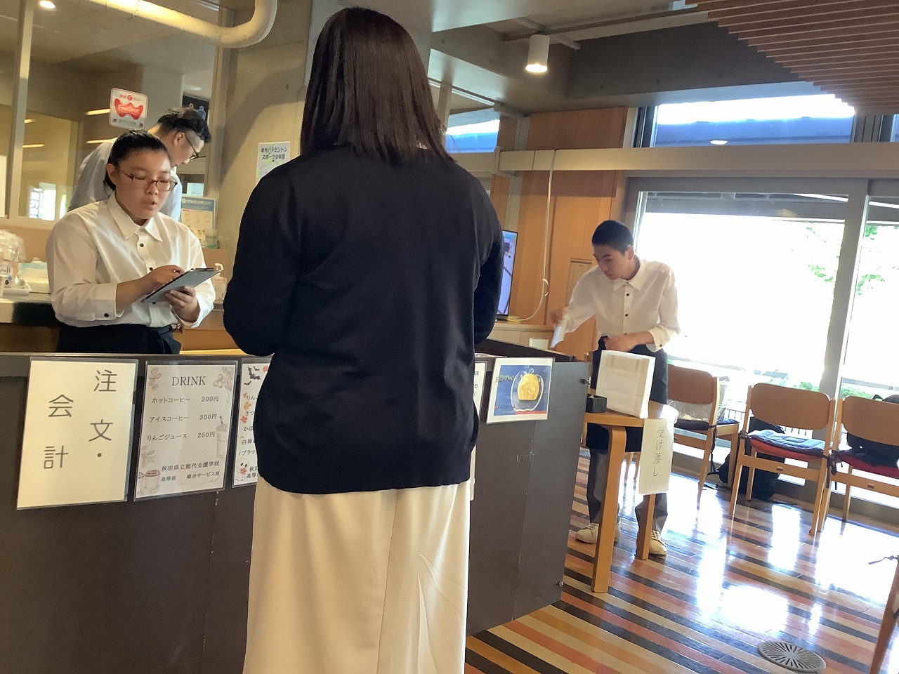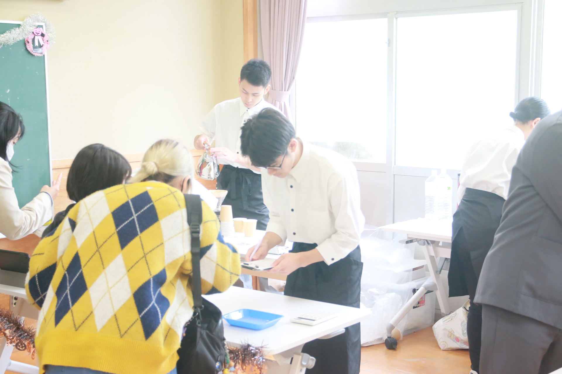 9月から2月まで、総合サービス班では市役所や「夢工房咲く・咲く」さんで、木曜カフェを行いました。今年度は、2~3人体制でメンバーを入れ替えながら「受付・会計」「パントリー」「受け渡し」を全員が経験できるようにしました。お客様の温かい御協力と励ましがあったおかけで回数を重ねるごとに上達を実感することができました。